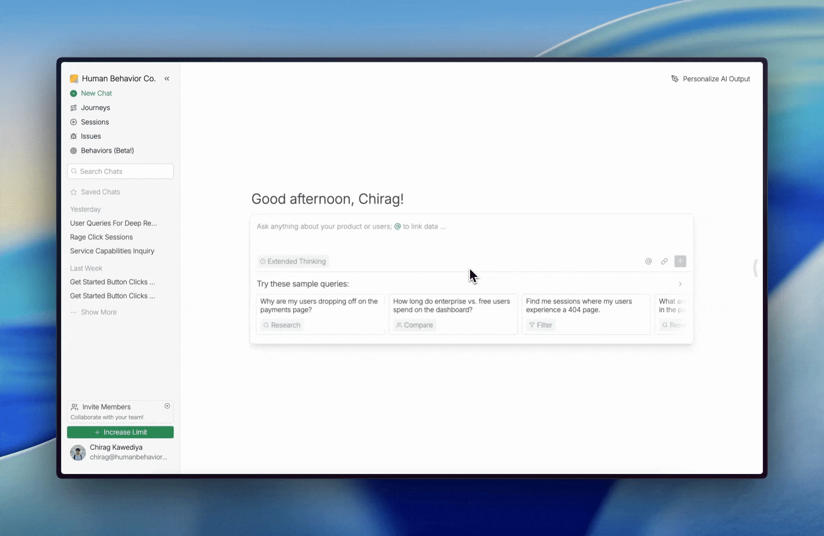 Naturally, there are some parts of your product that you have more concerns about. You can set filters to control which sessions are analyzed by the AI, so that you get the most relevant insights. You can configure this in the "Personalize AI Output" modal on the Deep Research page.